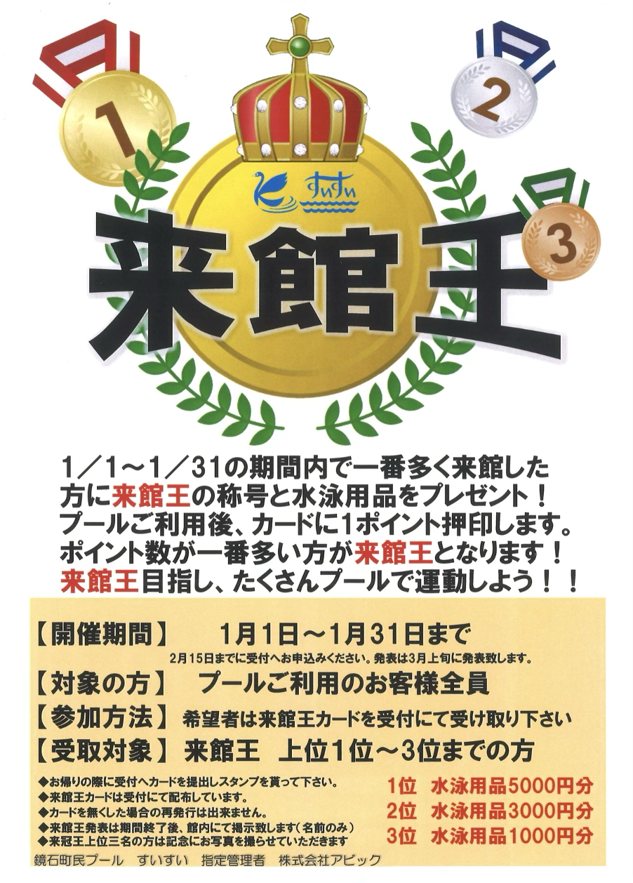 来館王イベント開催のお知らせ | 鏡石町民プール すいすい
