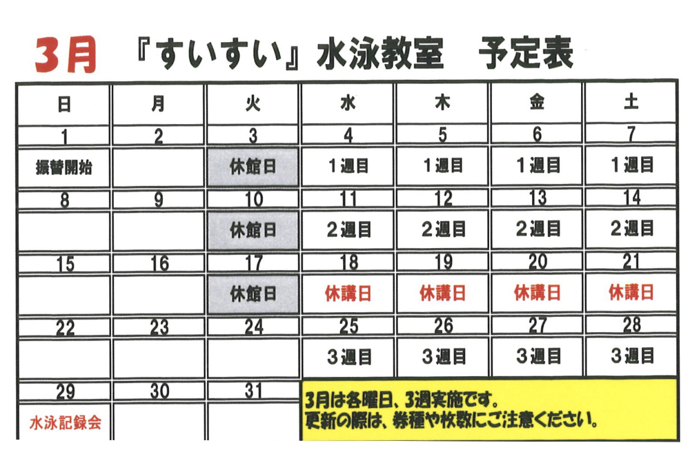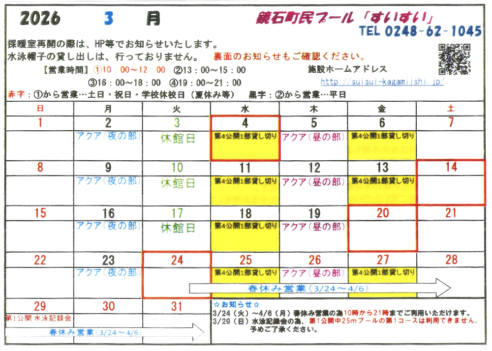 スケジュール | 鏡石町民プール すいすい